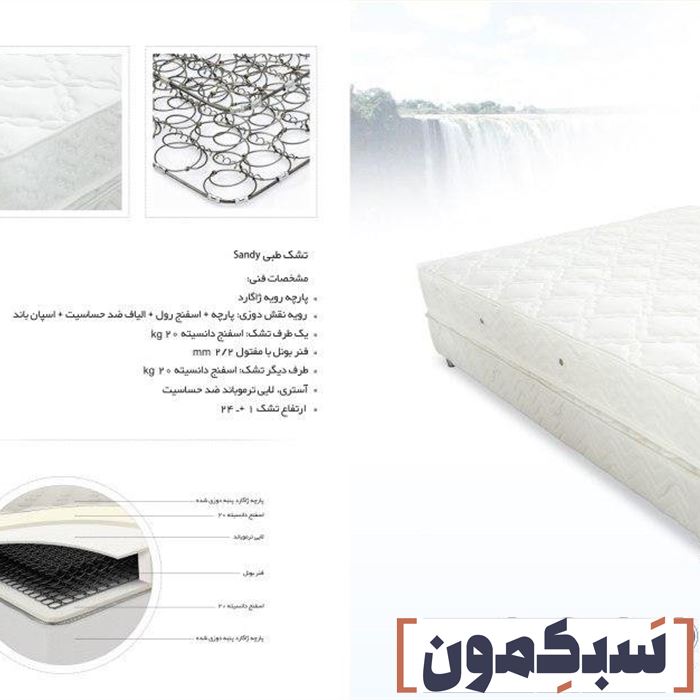 تشک طبی فنری دونفره دنلپ مدل Sandy سایز 200x200 سانتیمتر