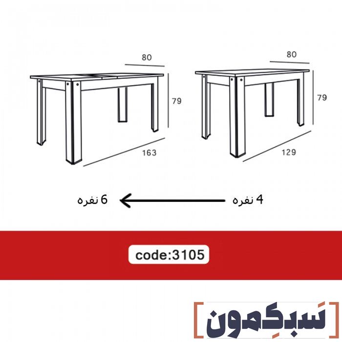 میز ناهارخوری 4 به 6 نوا کمجاچوب