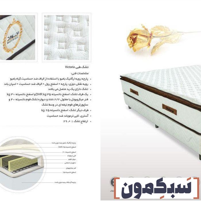 تشک طبی فنری دونفره دنلپ مدل Victoria سایز 160x200 سانتیمتر