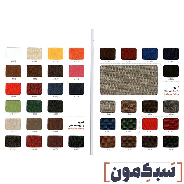 | نکات خرید | رنگ کالیته های چرم و پارچه در مونیتورهای مختلف با اندکی تفاوت نمایش داده می شود. شما با انتخاب رنگ در واقع طیف رنگ مربوطه را انتخاب کرده اید. |