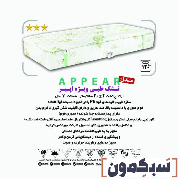 تشک دونفره رویا مدل مدیکال 3 سایز 200x180 سانتیمتر