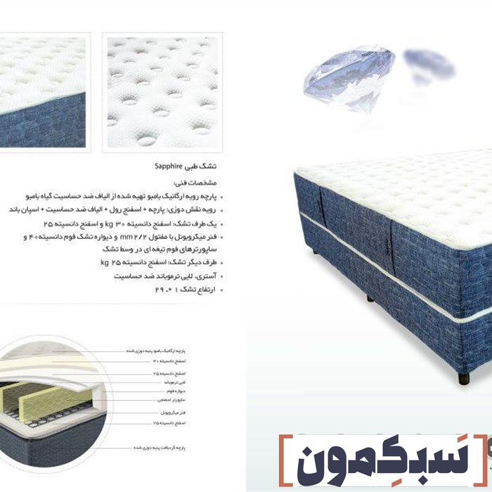 تشک طبی فنری دونفره دنلپ مدل Sapphire سایز 200x200 سانتیمتر